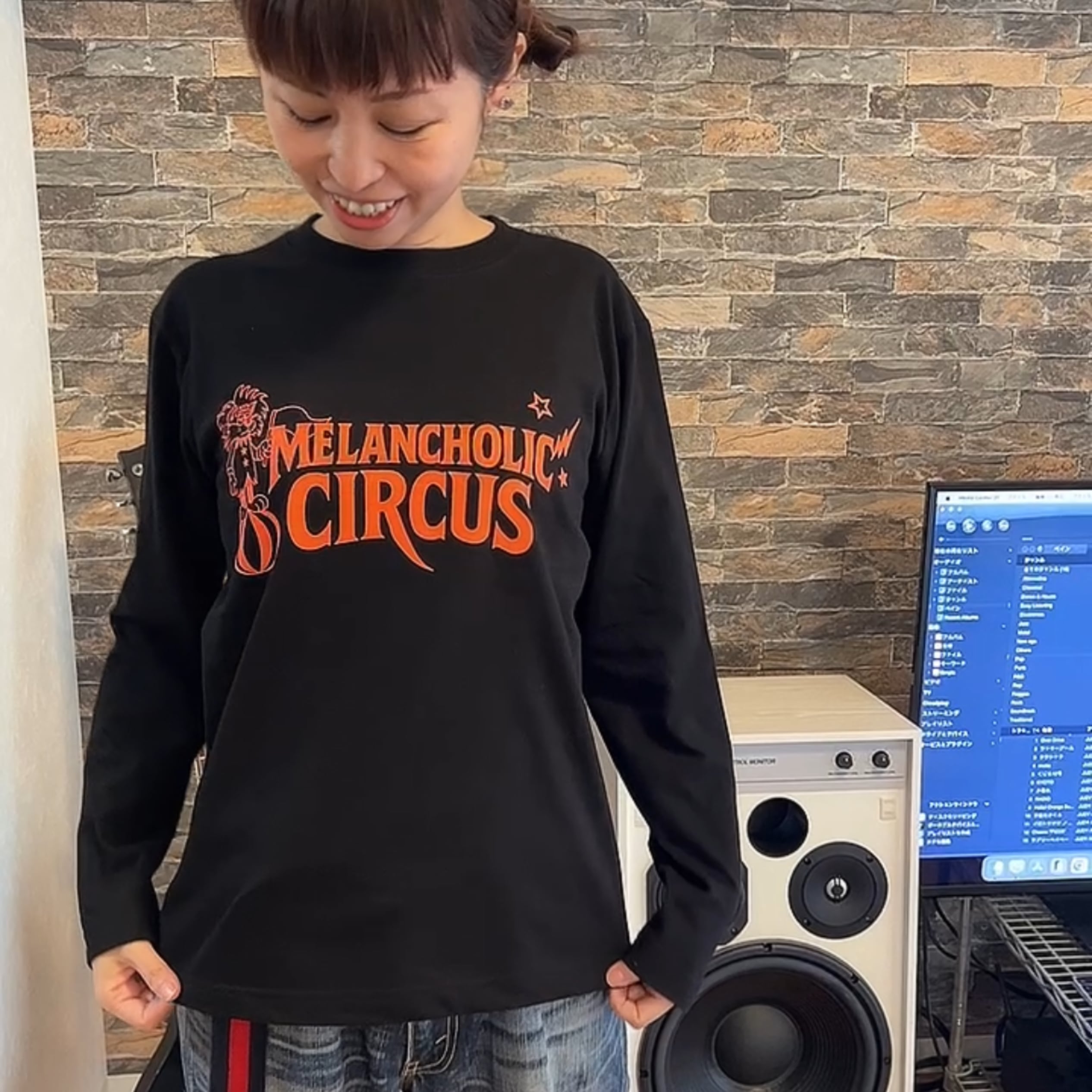 サーカスのライオンとメラカスのロゴが全面にプリントされたロングTシャツ。
